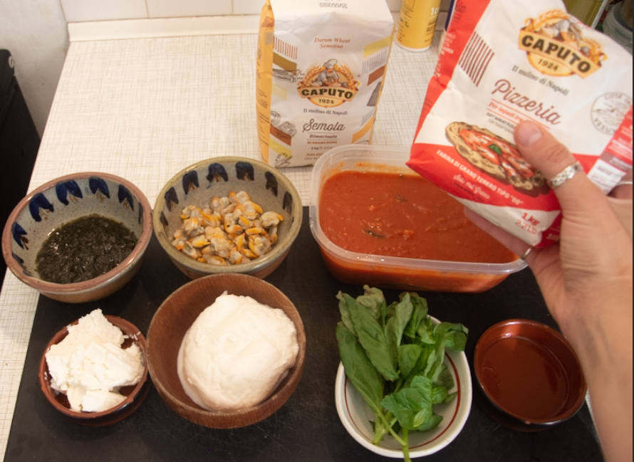 To every Italians horror, here’s my twist on a Neapolitan style pizza, ‘Cockles, Laverbread, Ricotta, Mozzarella and Basil Pizza’. Using the frying pan technique, which mimics the conventional style pizza oven temperature. The grill and hob must be at the highest heat settings possible. Ensuring you save on electricity or gas, since it cooks under a minute, depending on how fast your cooker operates. The 65% hydration dough itself, can make it trickier and stickier to work with, but practice makes perfect. And you can always add more flour if you are finding it impossible to work with.