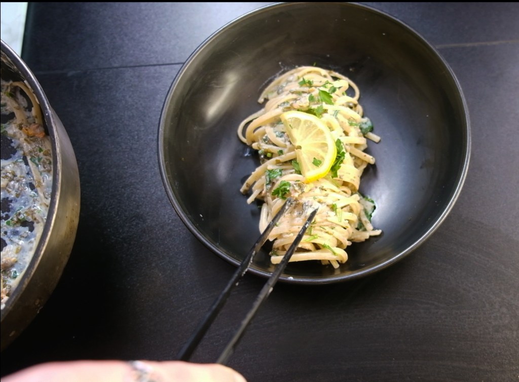 Linguine with Ricotta, Spinach, Penclawdd Cockles & Laverbread